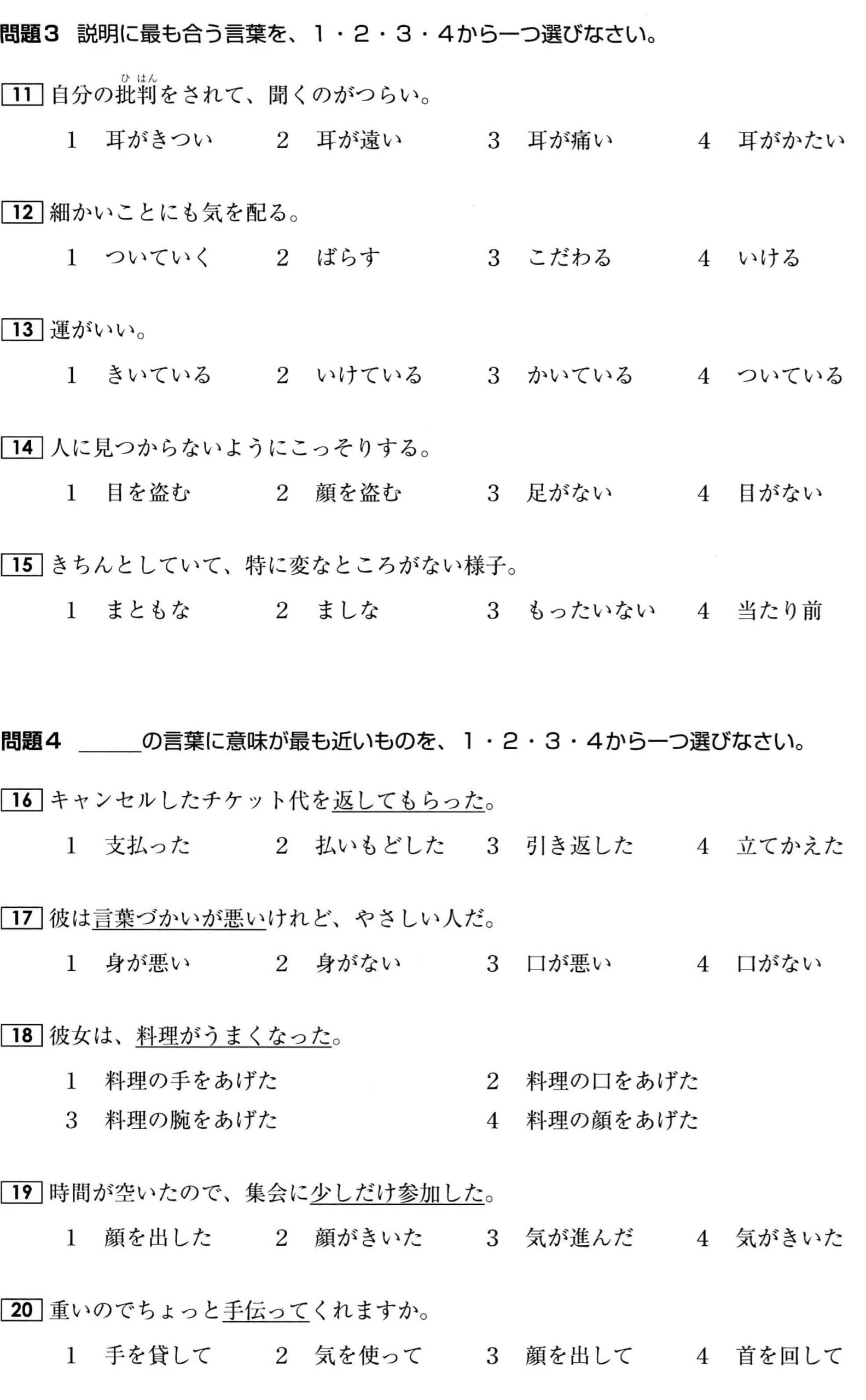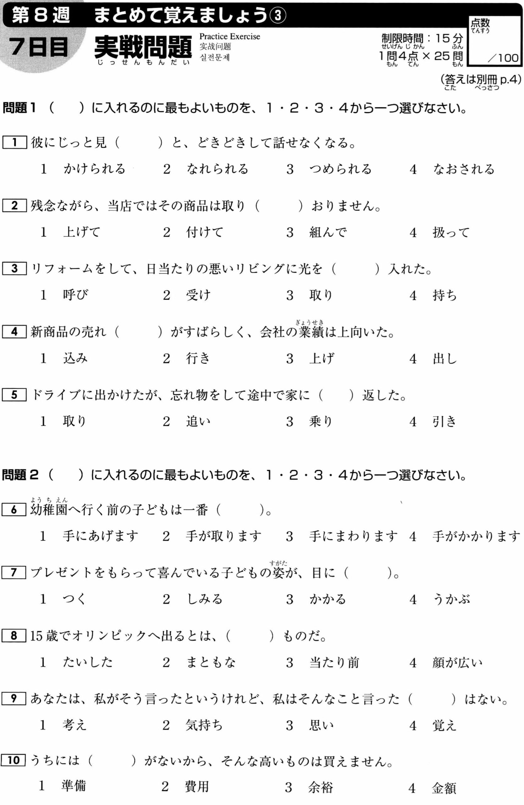 JLPT N2 Vocabulary Exercises: Test 8 (with Answers)